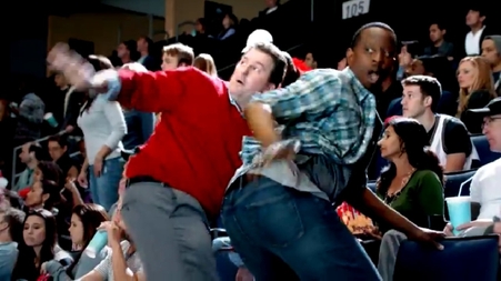 Think about it: These assholes must have just taken their seats if the agent is just now getting around to thanking his client for the ticket. And in that very same moment, they conveniently end up on an exceedingly static stadium fan cam that gives them far more time to perform an impromptu dance than any other fan cam in the history of professional organized sports or impromptu dancing.